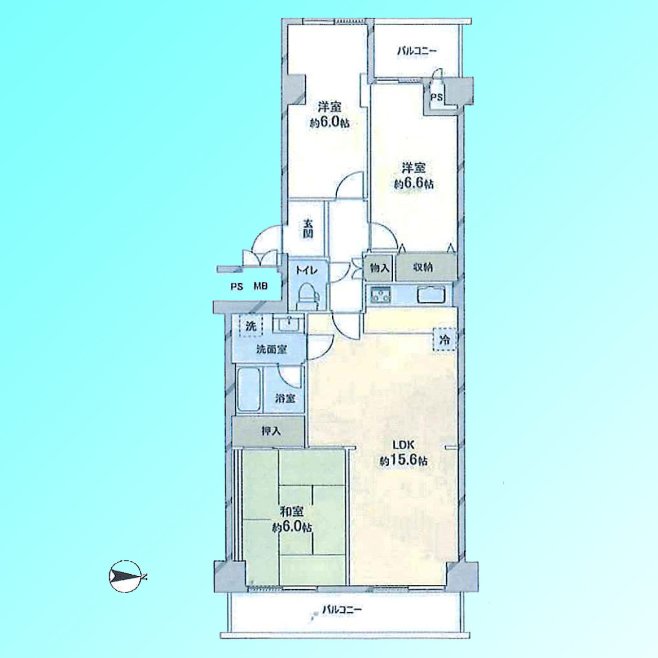 | 間取 | 3LDK (LDK15.6帖、和室6.0帖、洋室6.6帖、洋室6.0帖) | ||
