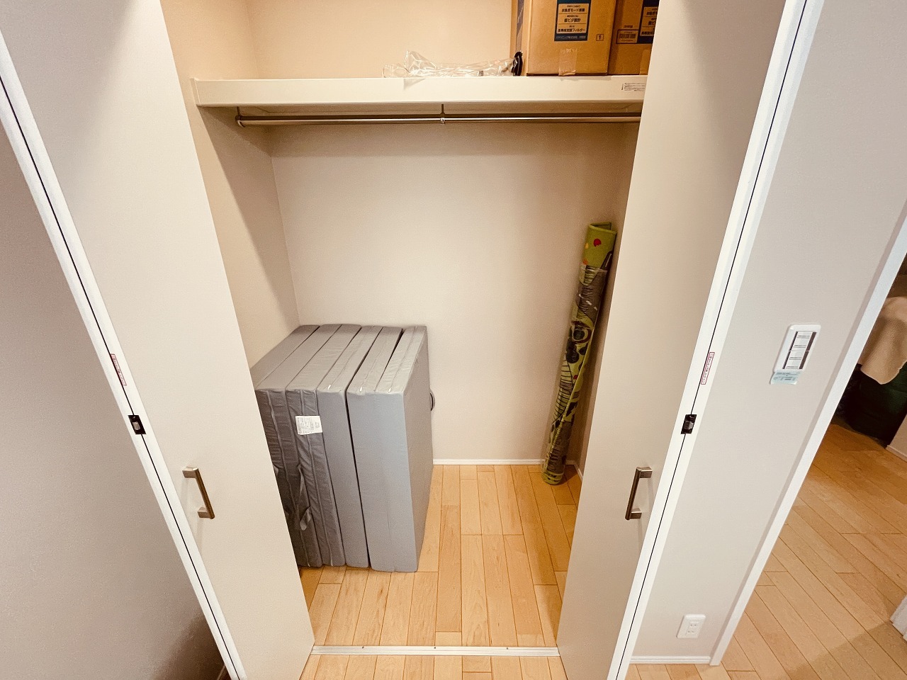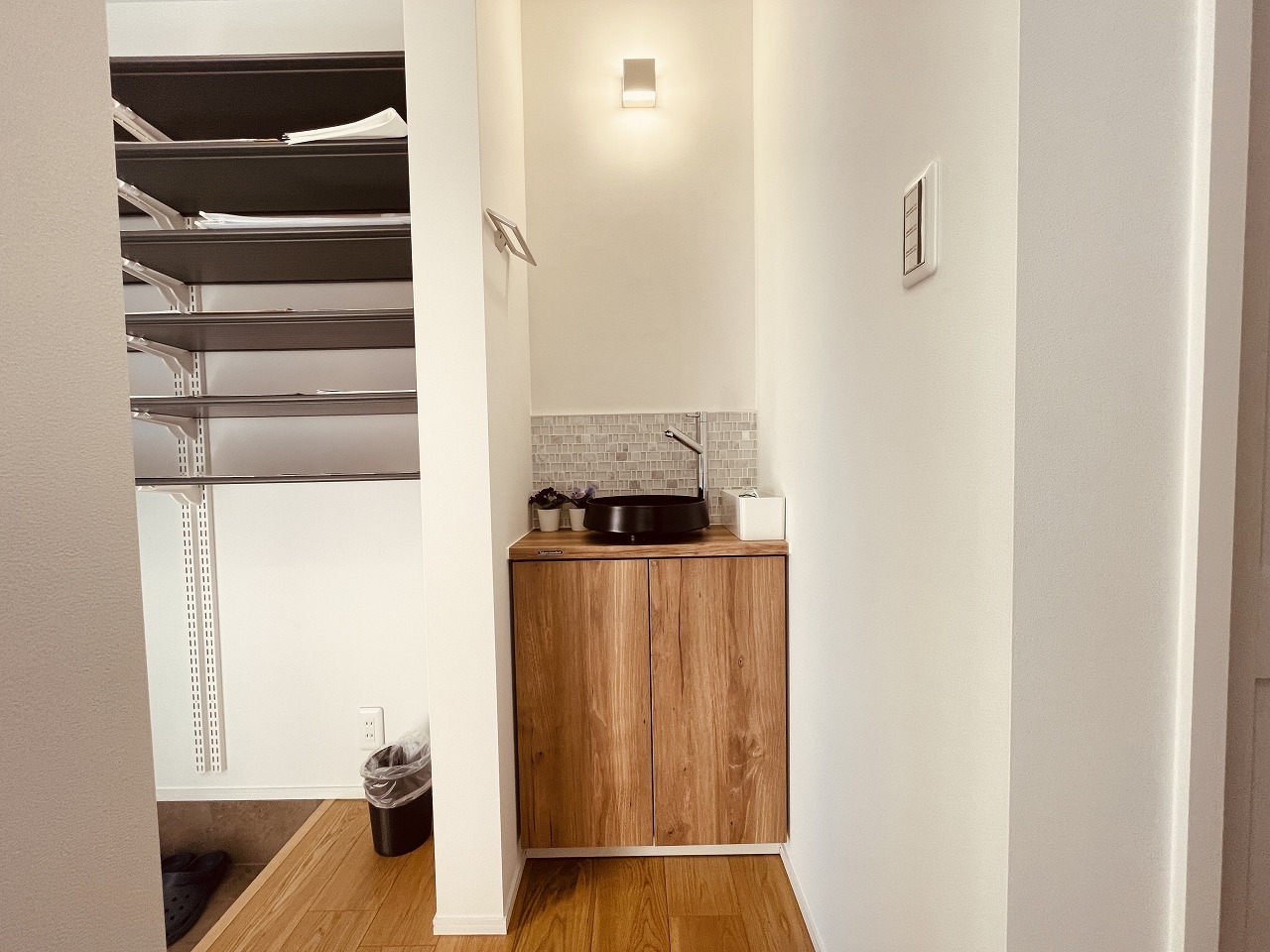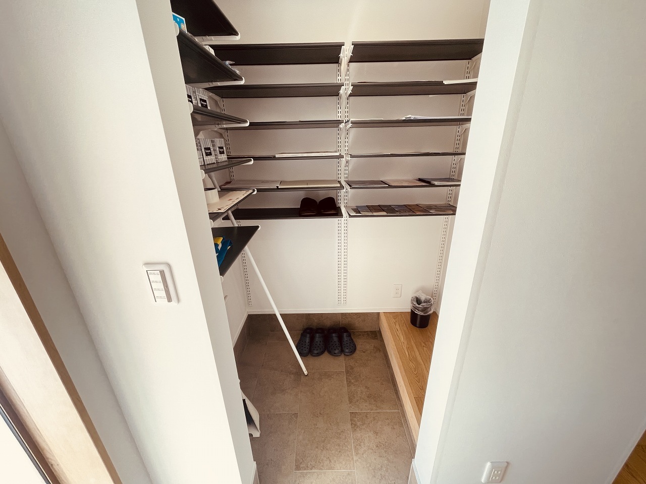 靴が沢山ある方には嬉しいシューズクローク。ベビーカーやゴルフバッグなども置けそうなスペースに