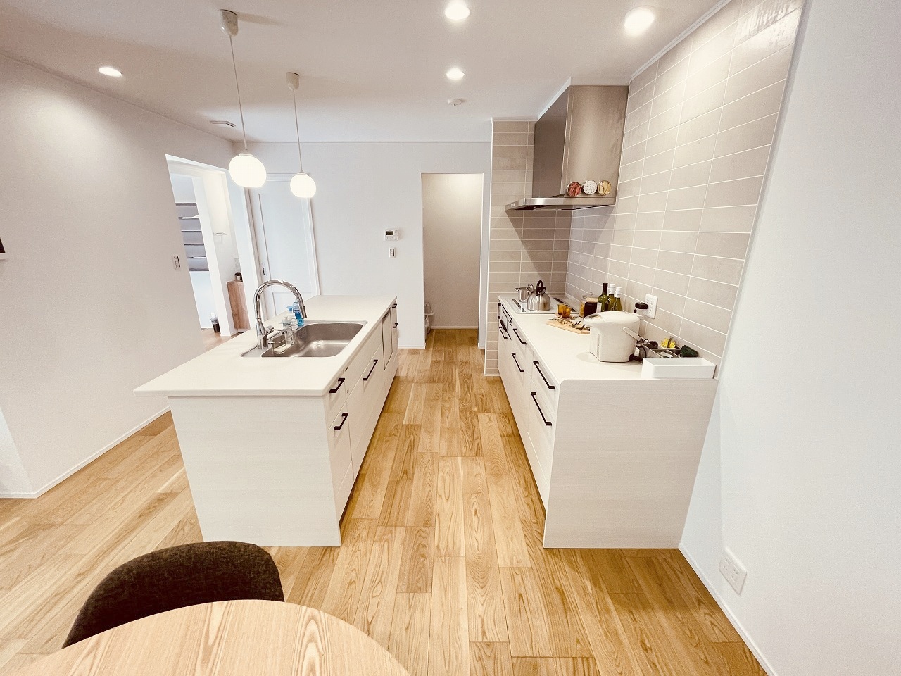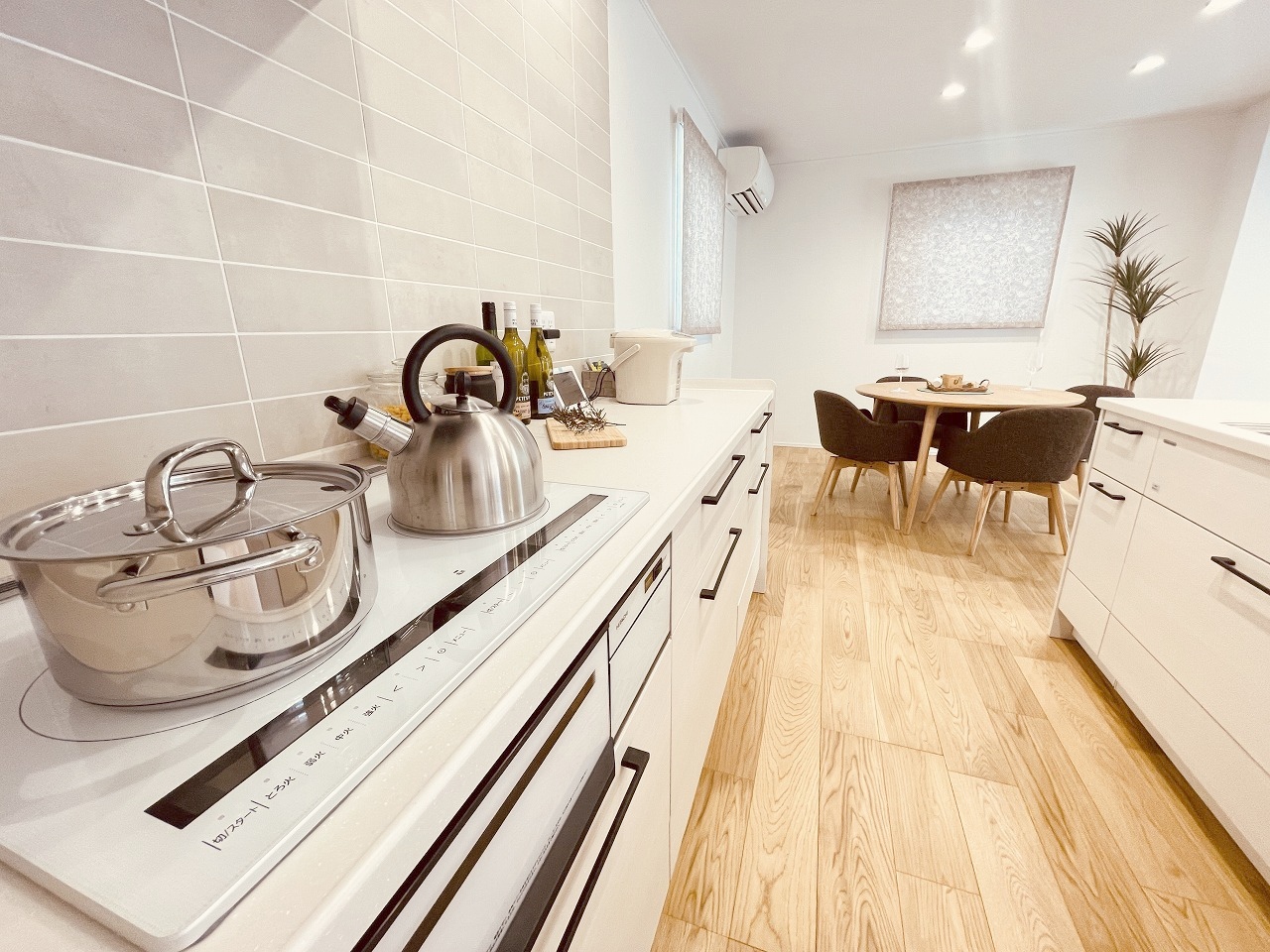 家族が食事するダイニングスペースをキッチンから見渡せる設計に。お料理をしながら家族とのコミュニケーションが増えそうな予感。