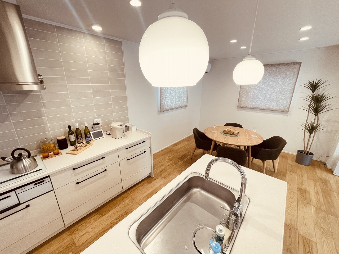 家族が一番集まる場所だから広々としつつも素敵な空間であって欲しい。みんながくつろぐリビングからキッチンまでが一つの空間のように繋がる間取り。