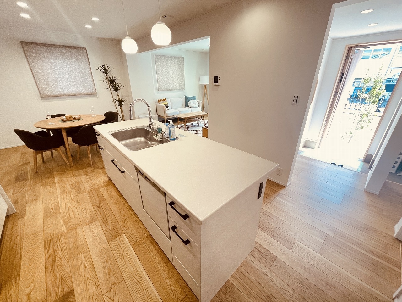 開放的な見通しと全体が見渡せることでご家族の団欒スペースもより明るく笑顔が溢れる空間となります。