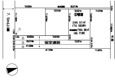 | 土地面積 | 164.36m² 実測 (協定道路部分面積82.15平米含まず) | ||