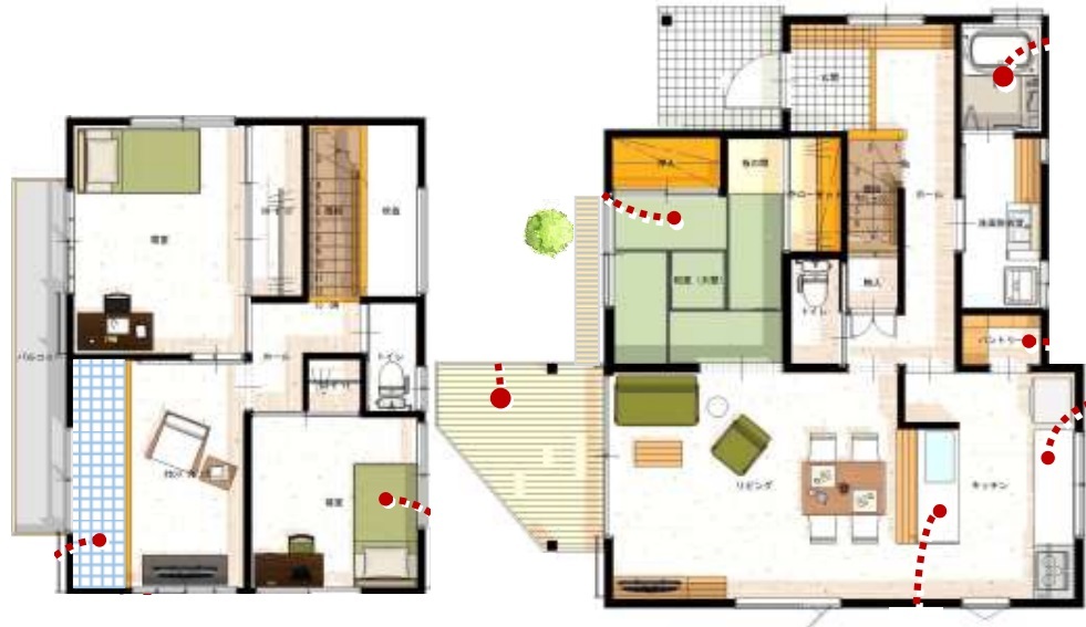 - ※完成予想図はいずれも外構、植栽、外観等実際のものとは多少異なることがあります。