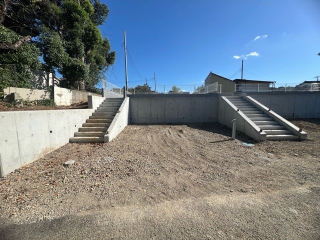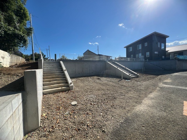 B号地 澄み渡る空の下、趣のある石段が訪れる人を静かに誘います。整然とした外観が、洗練された暮らしの始まりを予感させる住まいです