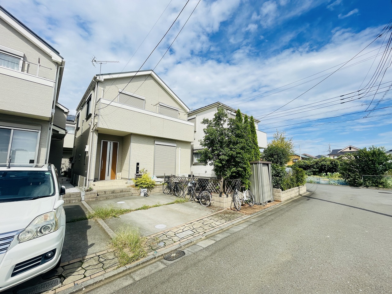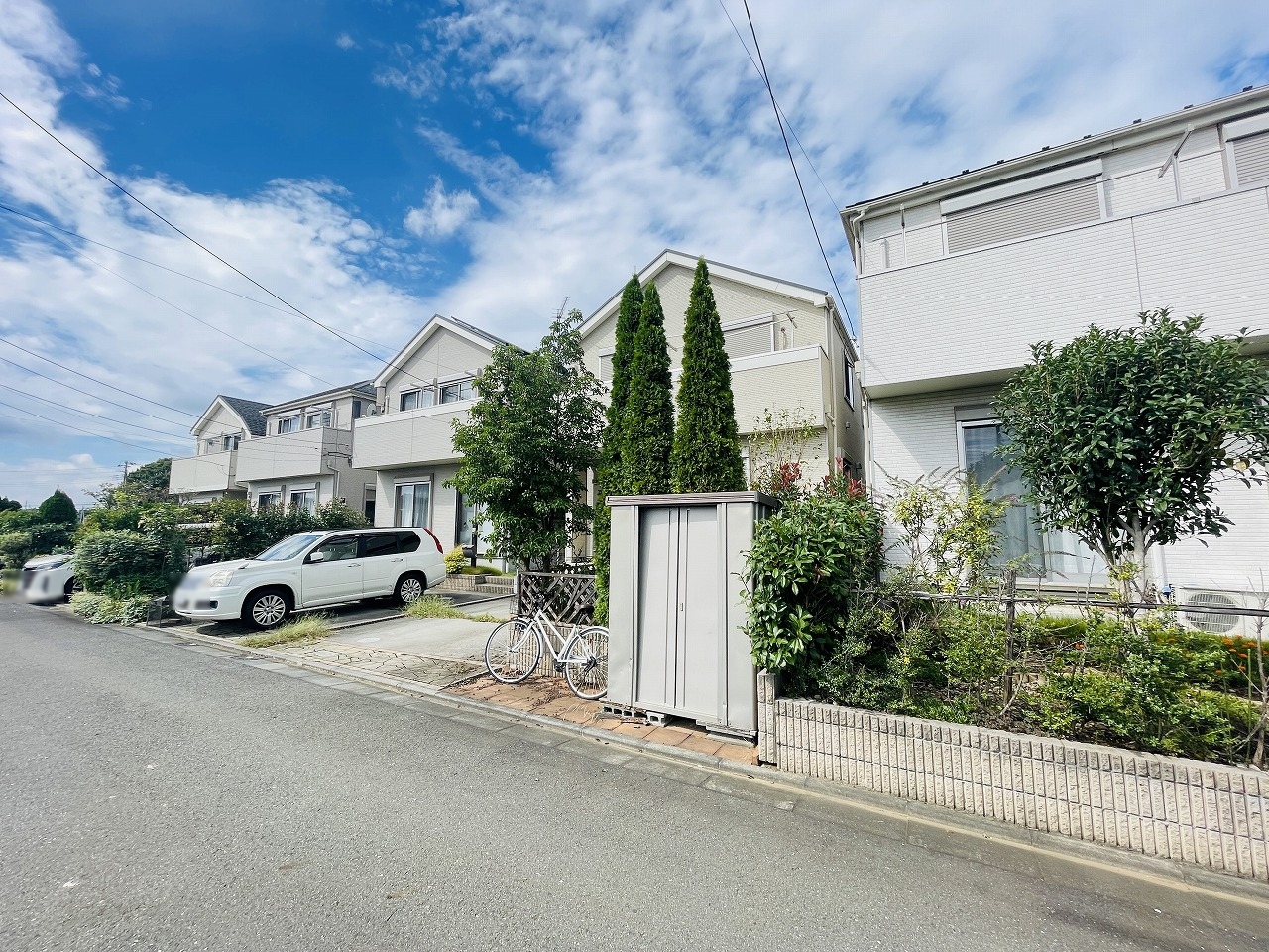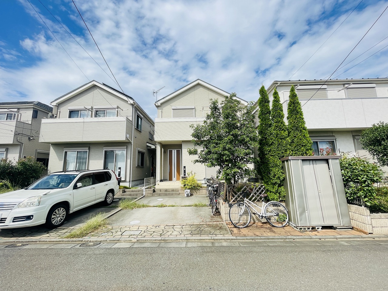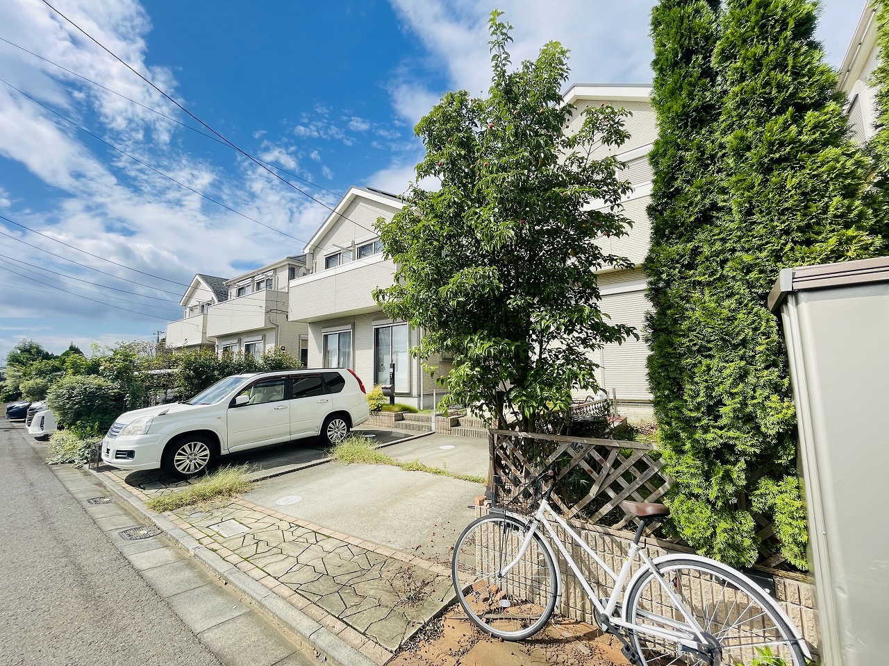 周辺の街並みの中で適度な主張、生活に溶け込むシンプルなデザインの外観が魅力の一戸建です。