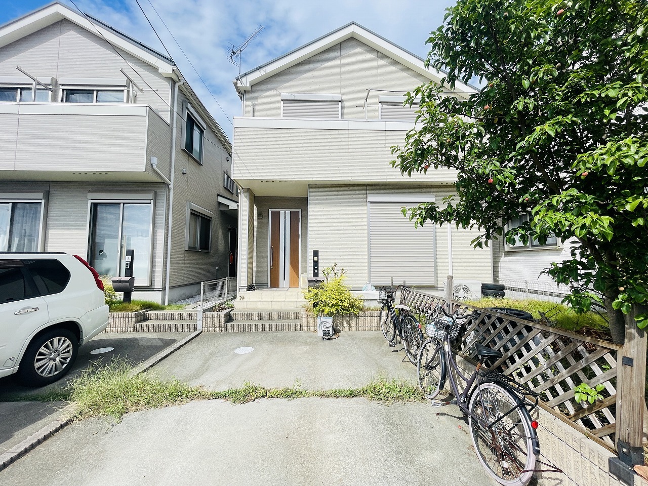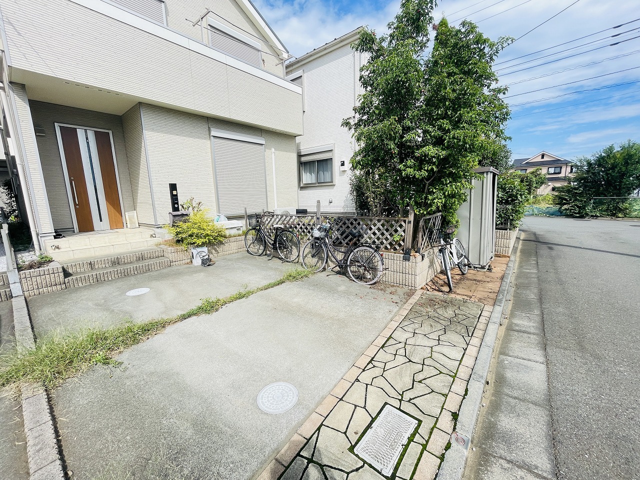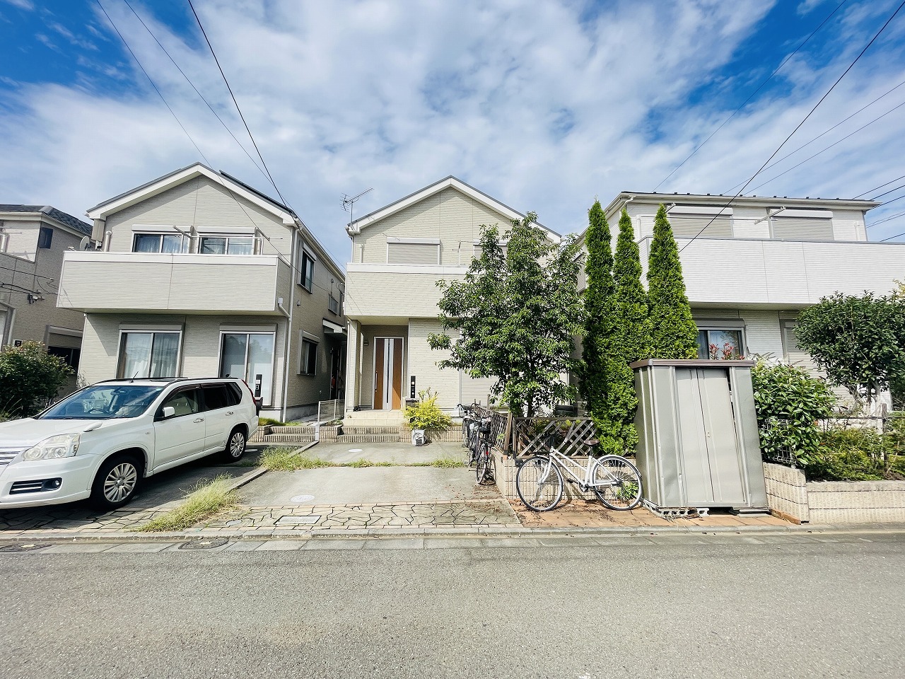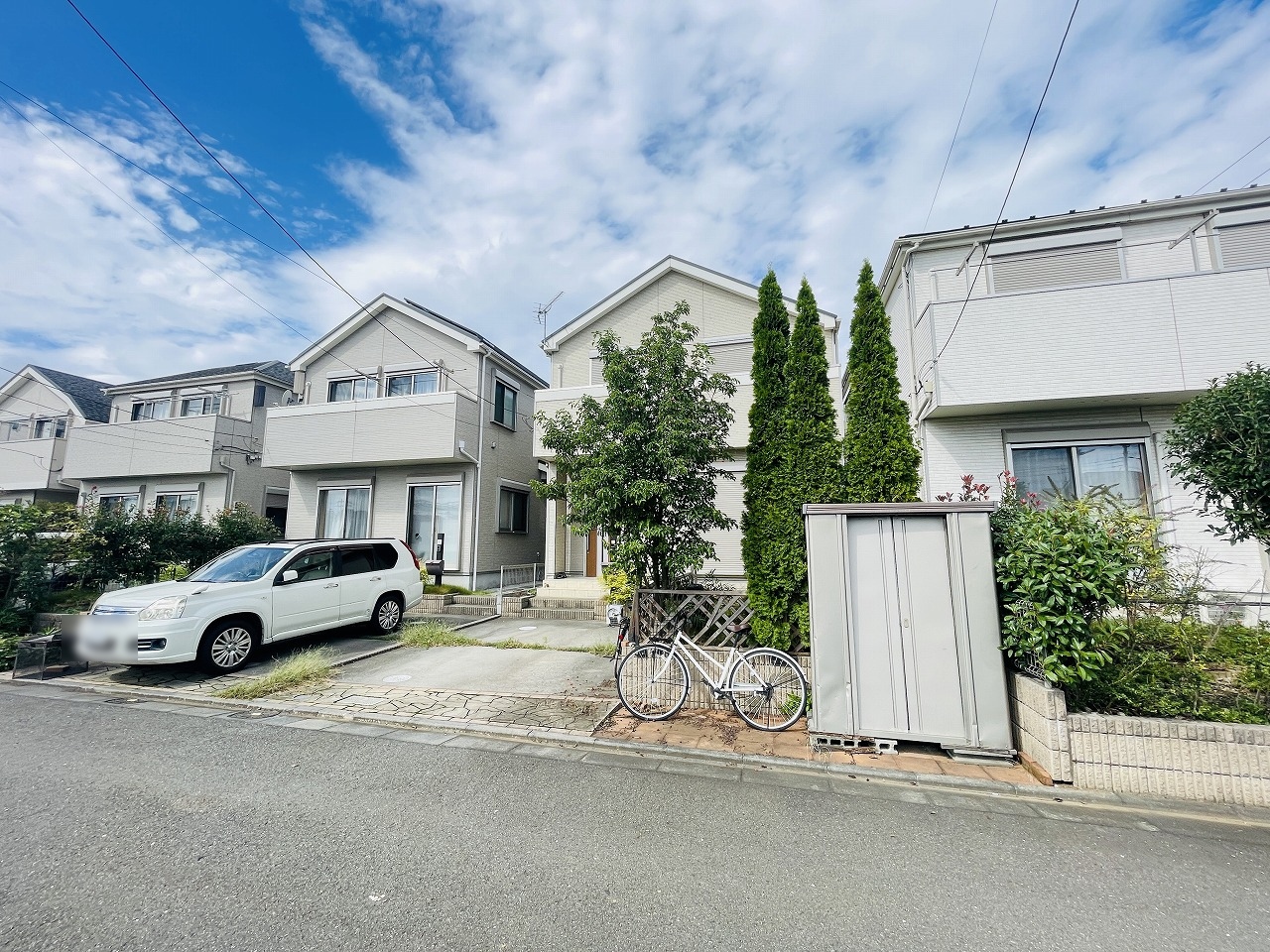 周辺の街並みの中で適度な主張、生活に溶け込むシンプルなデザインの外観が魅力の一戸建です。