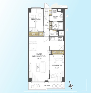 | 間取 | 2LDK (LDK16.4帖、洋室4.7帖、洋室5帖) | ||