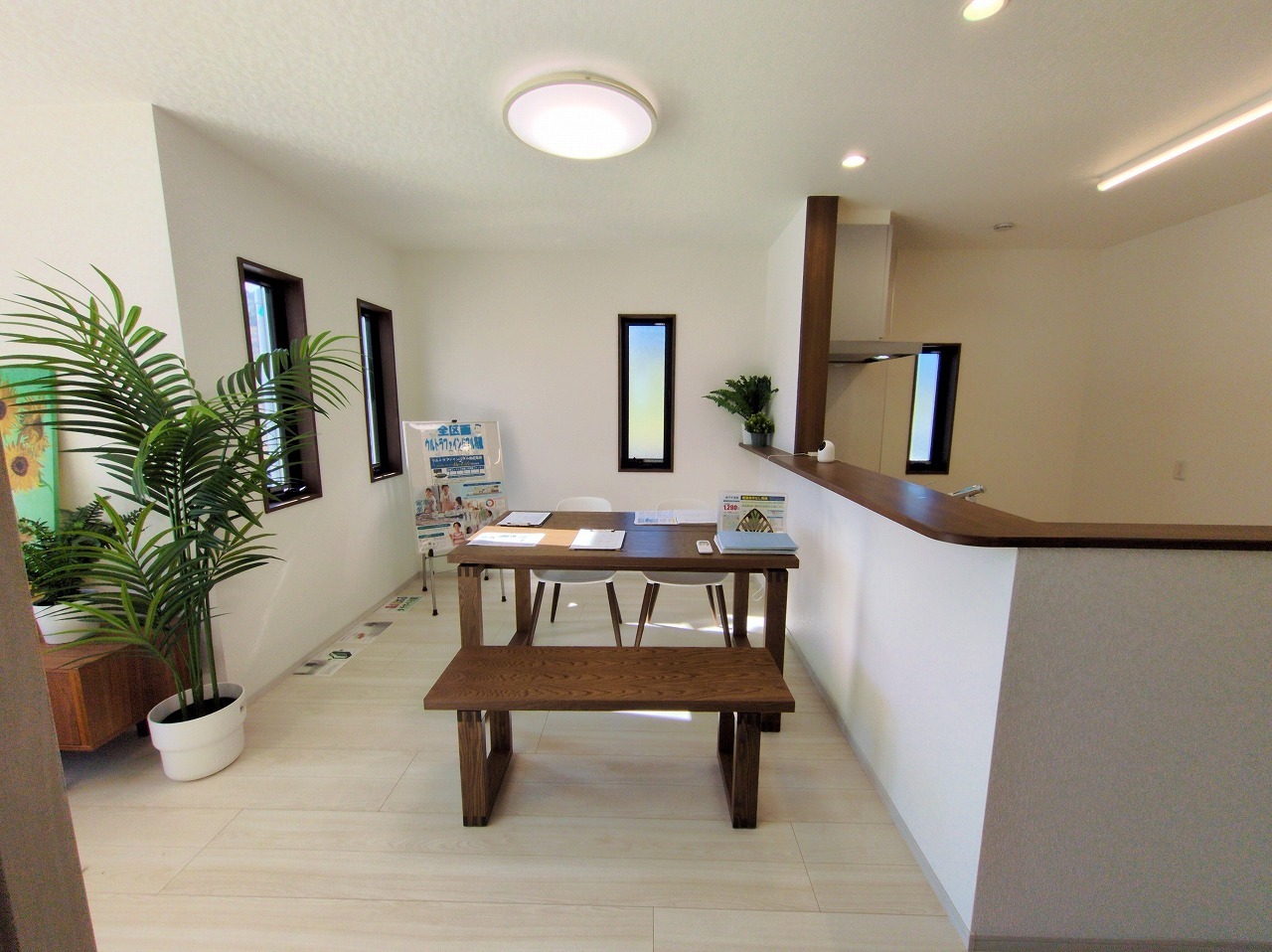 リビング空間とダイニング空間とか使い分けやすい間取り配置。対面式でキッチン立つ人の視界も良好です。