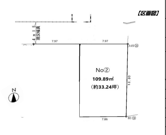 | 土地面積 | 109.89m² 実測 (私道28m²別に有、私道持分比率:1/2) | ||