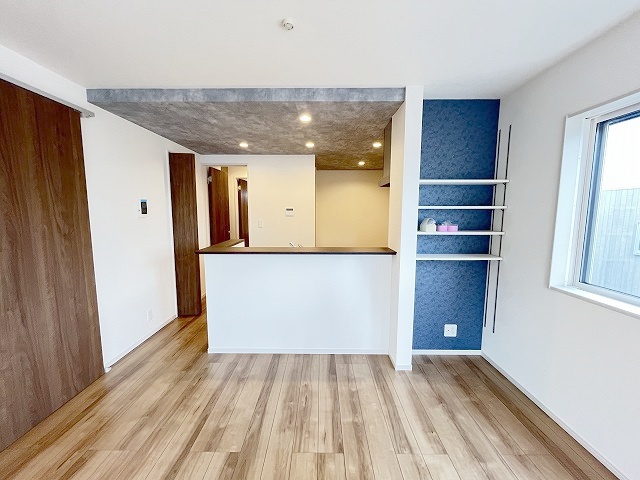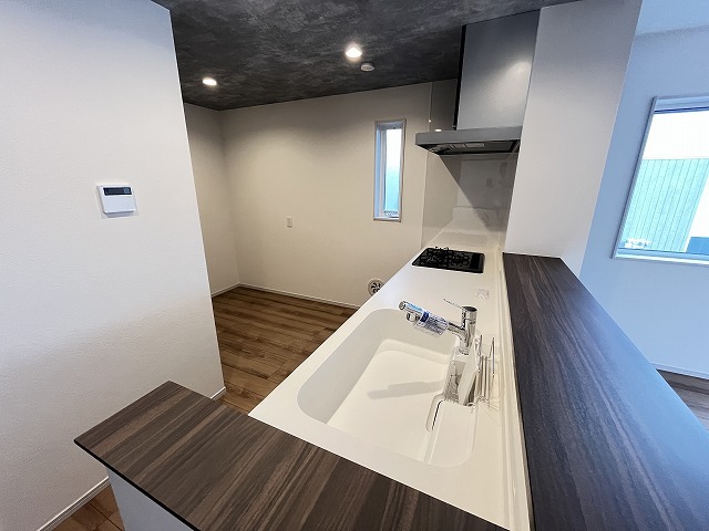 1号棟 カウンターキッチンは、キッチン側とリビング側に分かれてお店間隔でのお食事も可能!! お休みの日には、いろいろな楽しみ方を家族みんなでお楽しみください