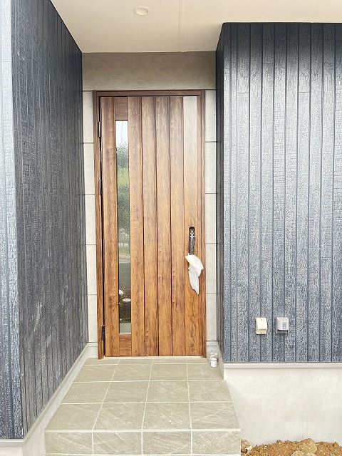 1号棟 玄関は家の第一印象を左右する重要な場所。ほどよい広さとスタイリッシュな色遣いが印象的です。