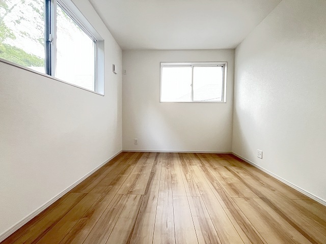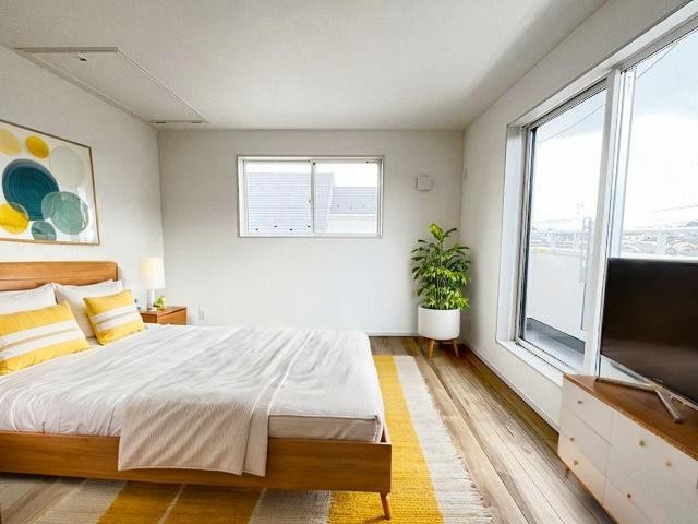 1号棟 洋室はモダンなデザインと機能性を備え、快適な生活空間に。明るい窓から差し込む自然光が広々とした空間をさらに明るく開放的に感じさせます。