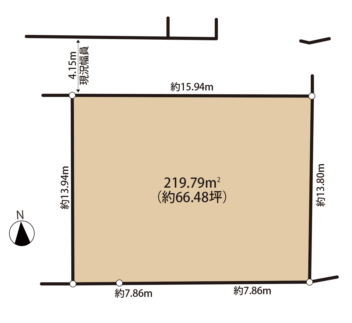 | 土地面積 | 219.79m² 実測 (私道28m²別に有) | ||