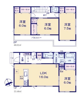 | 間取 | 4LDK (LDK16帖、洋室7.5帖、洋室6帖、洋室6帖、洋室6帖) | ||