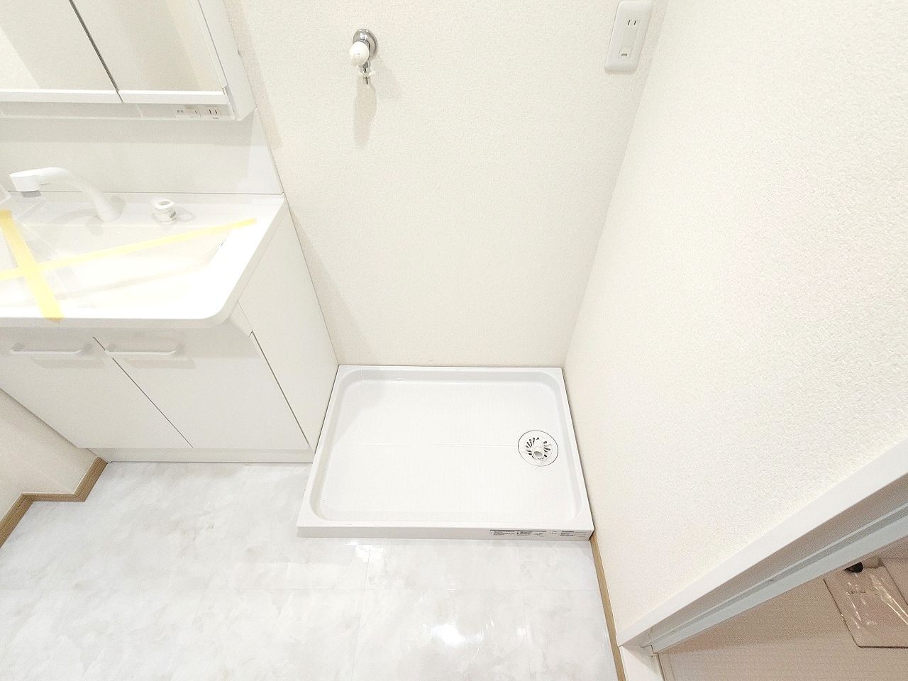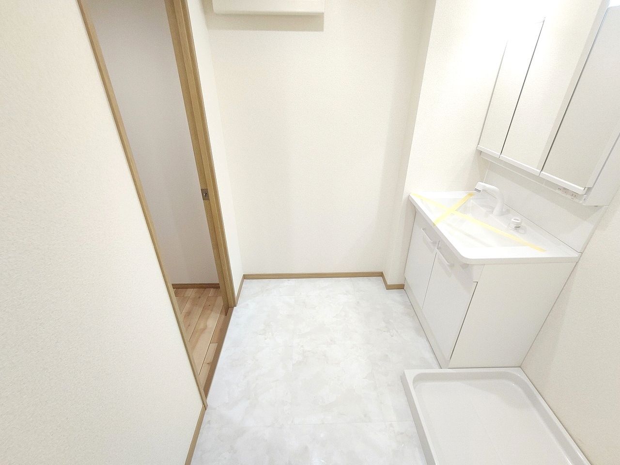 洗面化粧台は清潔感の漂うホワイトをベースカラーに、シンプルなデザインで。