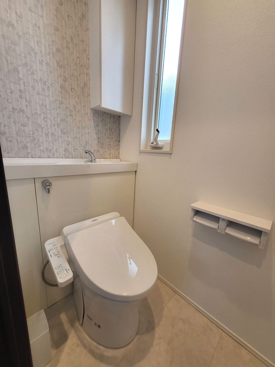 タンクが壁と一体となったお掃除の手間が省けるトイレです。