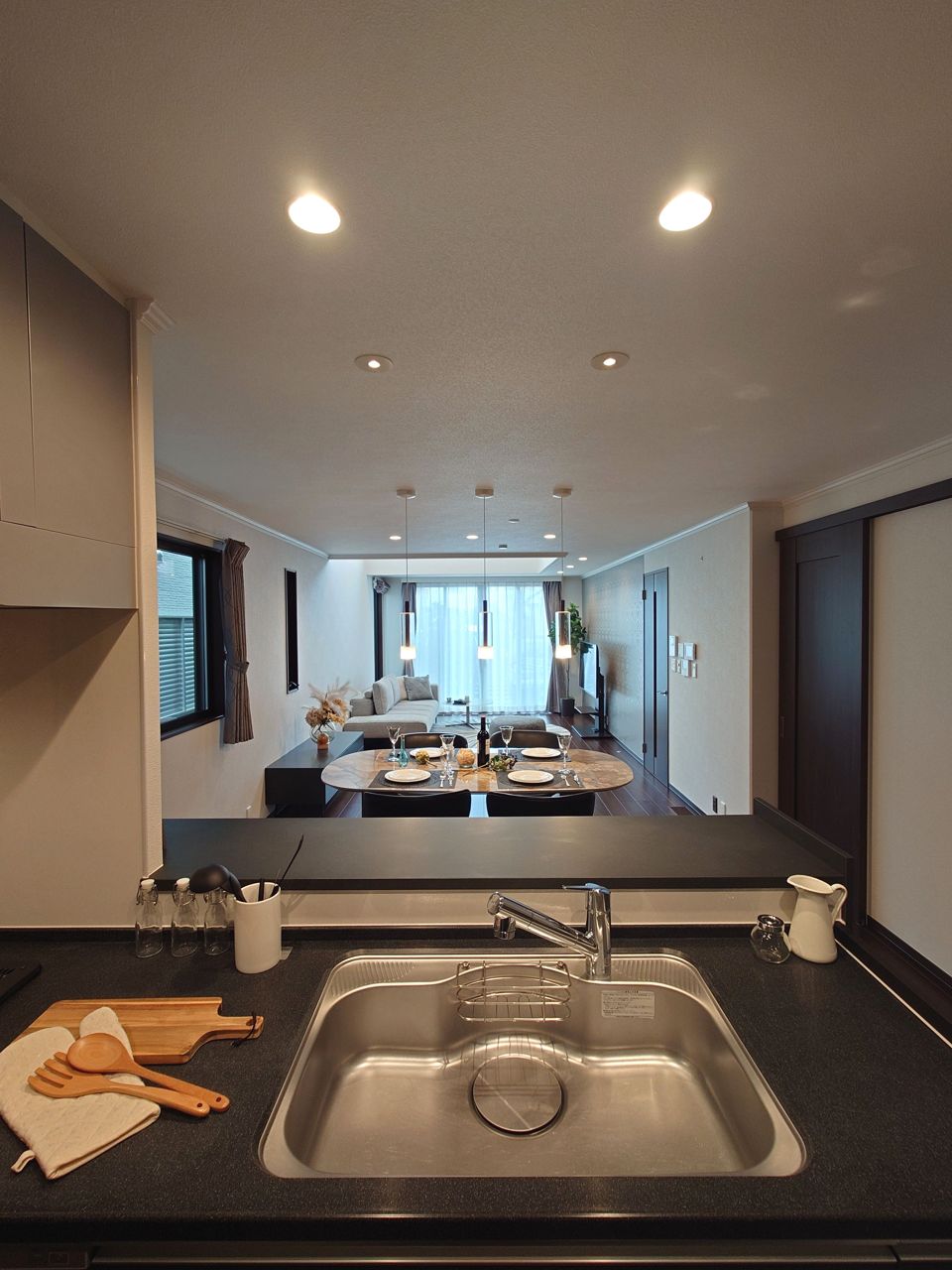 ~カウンターキッチン~ リビングで遊ぶお子様を見守りながらお料理ができる対面キッチン。