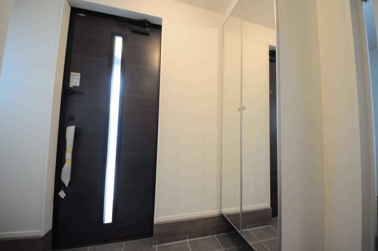 2号棟 お宅の顔となる明るく開放的な玄関。ご家族皆様様の靴を収納できるスペースと全身鏡があり、お出掛け前に身だしなみチェックもできます。