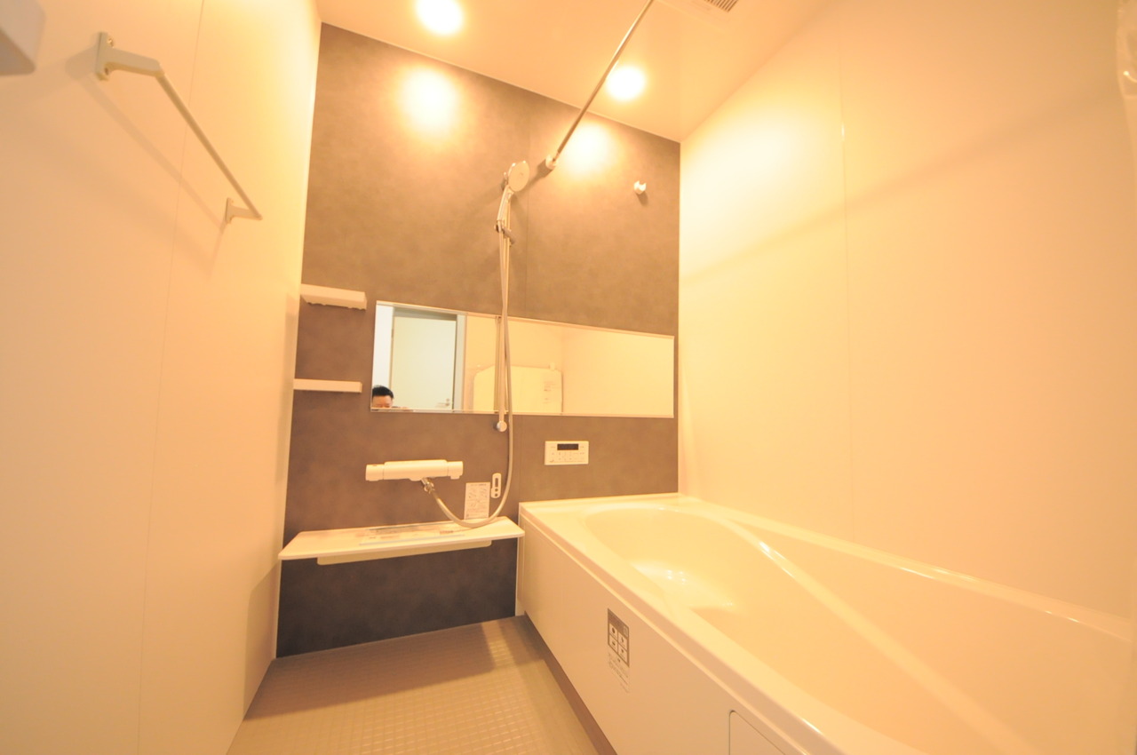 2号棟 落ち着いた色味の浴室で1日の疲れをゆっくりと癒してください。