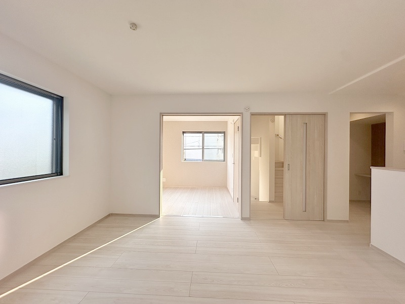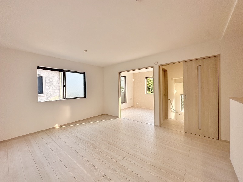 1階洋室。モダンなデザインと機能性を備え、快適な生活空間に。明るい窓から差し込む自然光が広々とした空間をさらに明るく開放的に感じさせます。