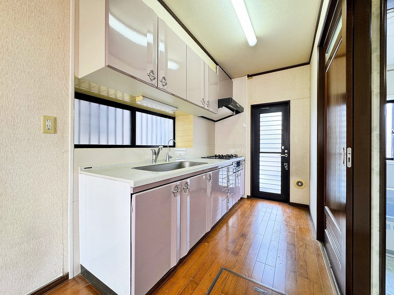 勝手口付きのキッチン。