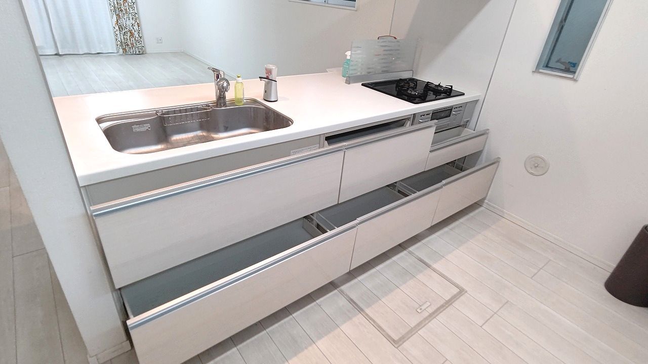 ご家族を近くに感じられる対面キッチン。