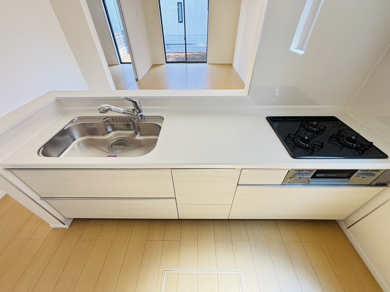 新築ならでは特典。未使用でスベスベの人造大理石を撫でてみてください。