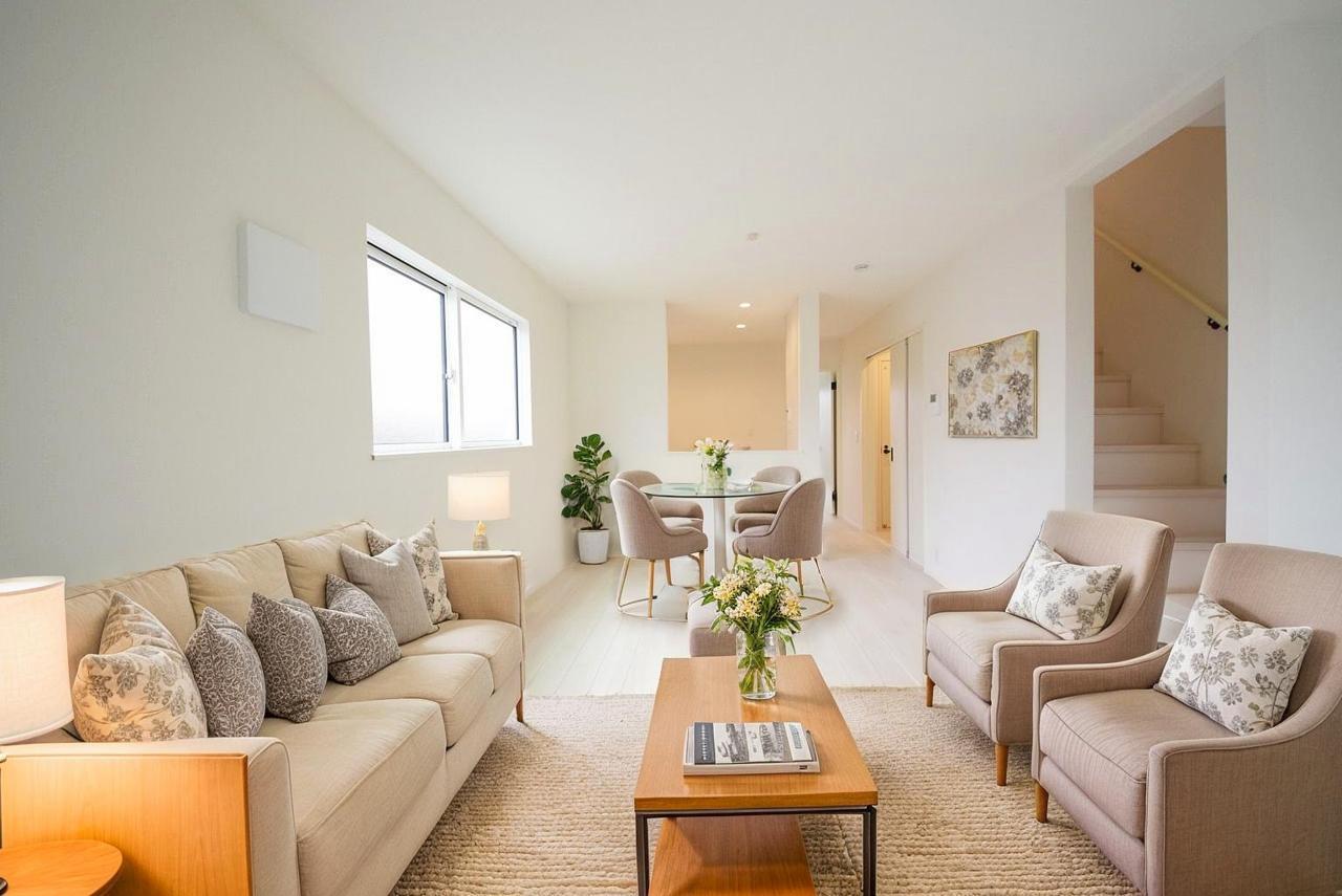 どんな家具にでも相性が良い清潔感ある白色調のクロスを採用。主張しすぎない配色、耐久性にも優れた床材は日々のメンテナンスも楽に、快適に過ごして頂けるよう考えられています。