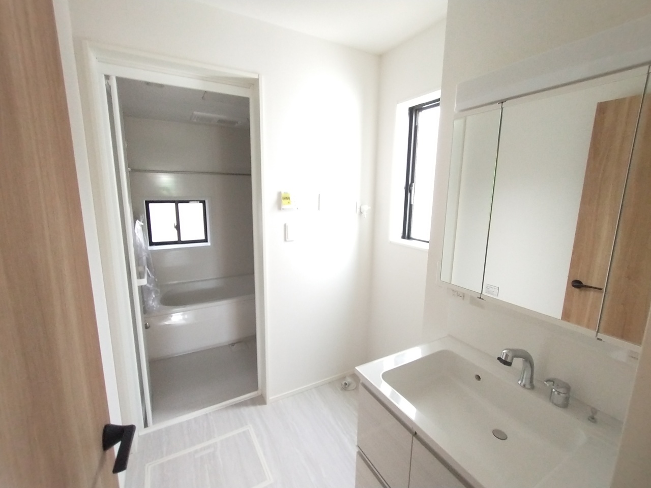 たっぷりの収納を設けたシャワー付洗面台で快適な暮らし。