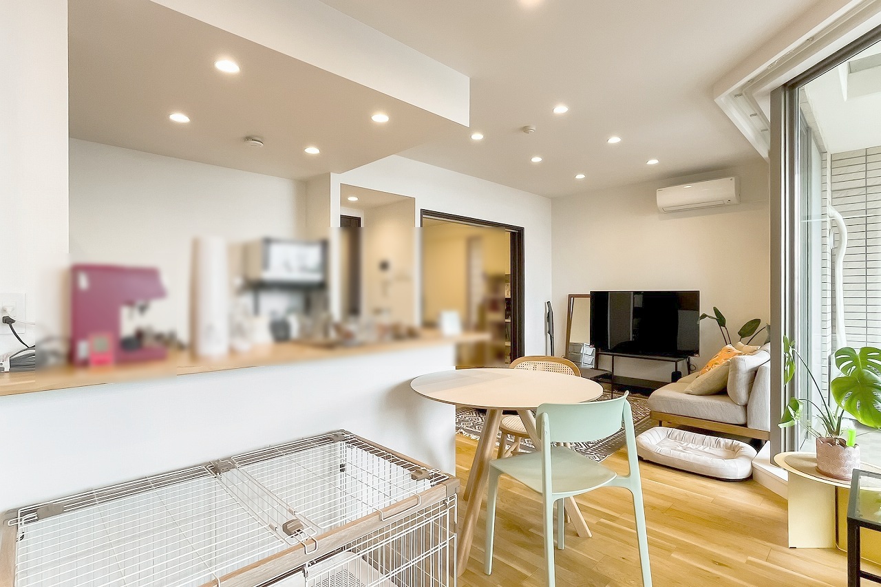 家族が食事するダイニングスペースをキッチンから見渡せる設計に。お料理をしながら家族とのコミュニケーションが増えそうな予感。
