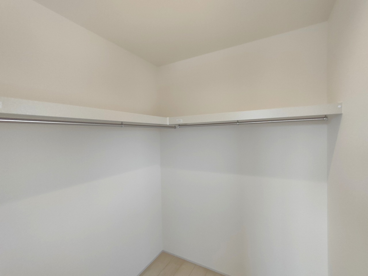 季節物の衣類もスッキリ収納できる、ウォークインクローゼット。