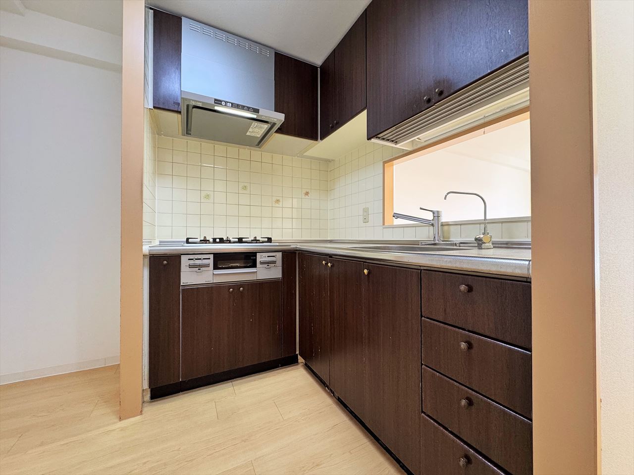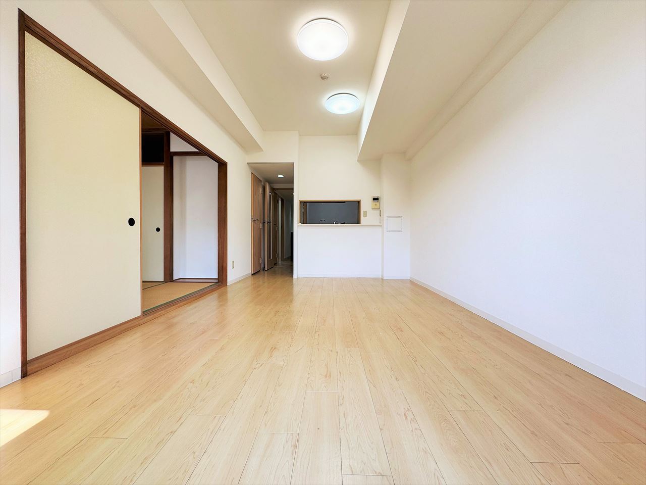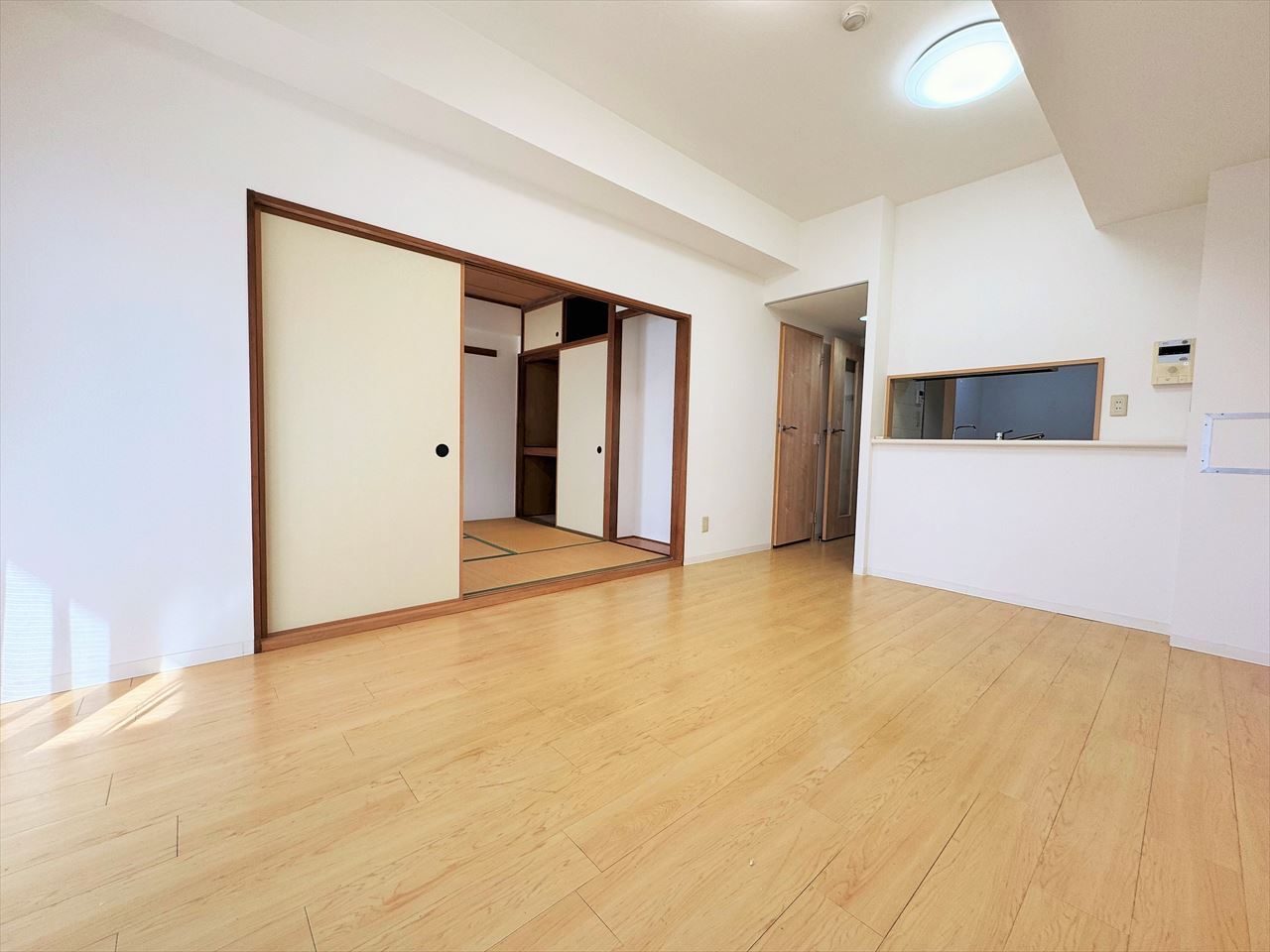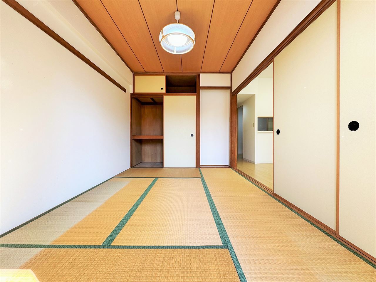 お引渡し前に畳の表替え行います。リビングと一体のように使える和室。キッチンからもよく見えます。