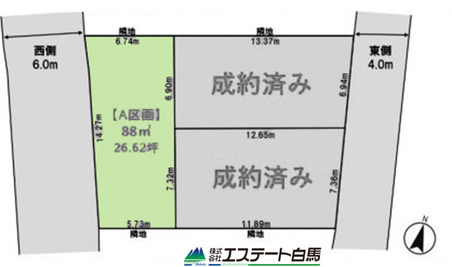 | 権利種類 | 所有権 | 接道 | 西側6M公道に14.2M接道 |
