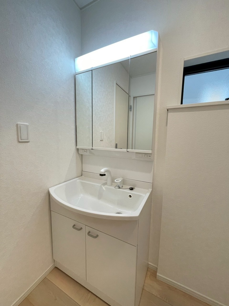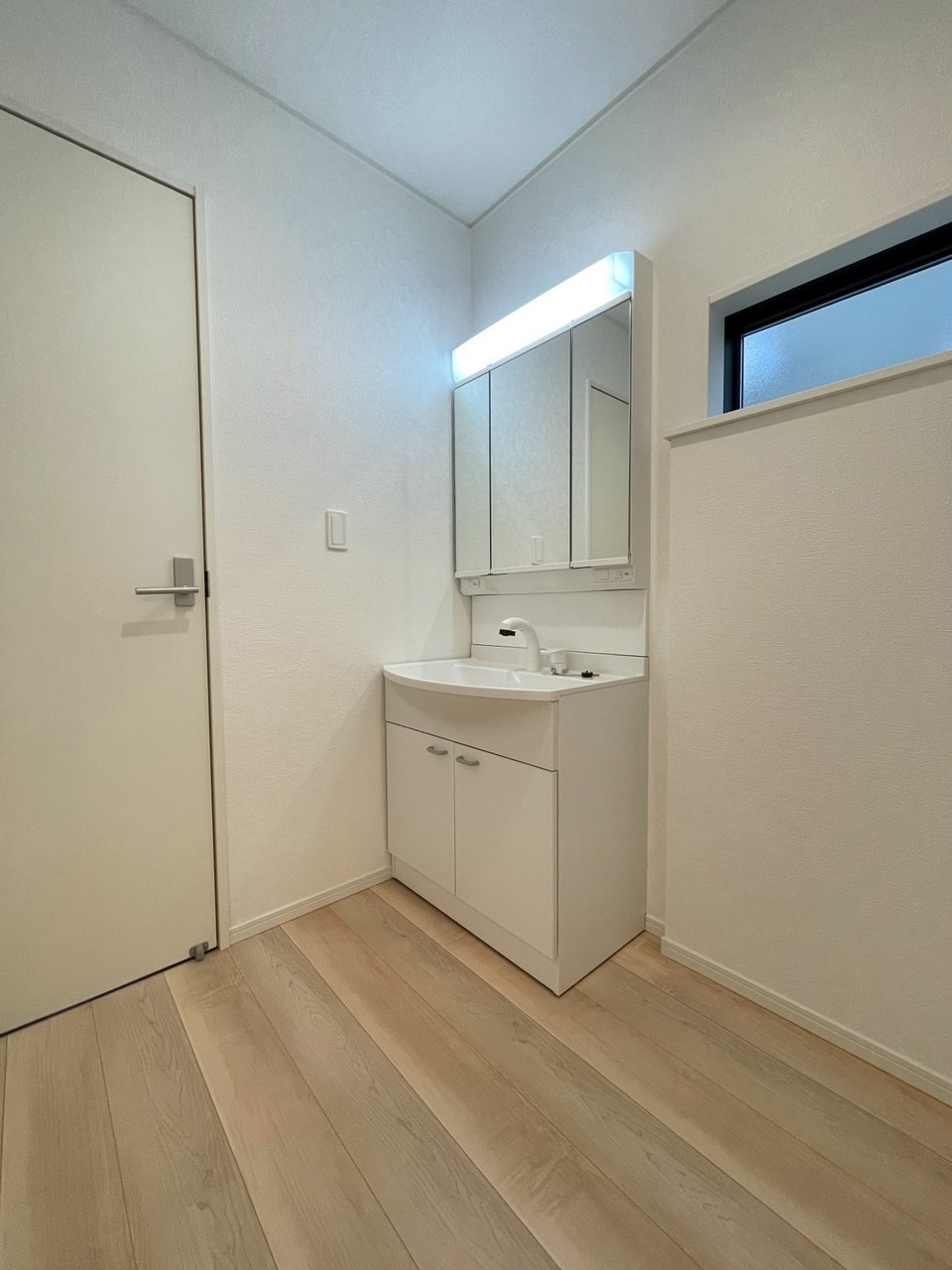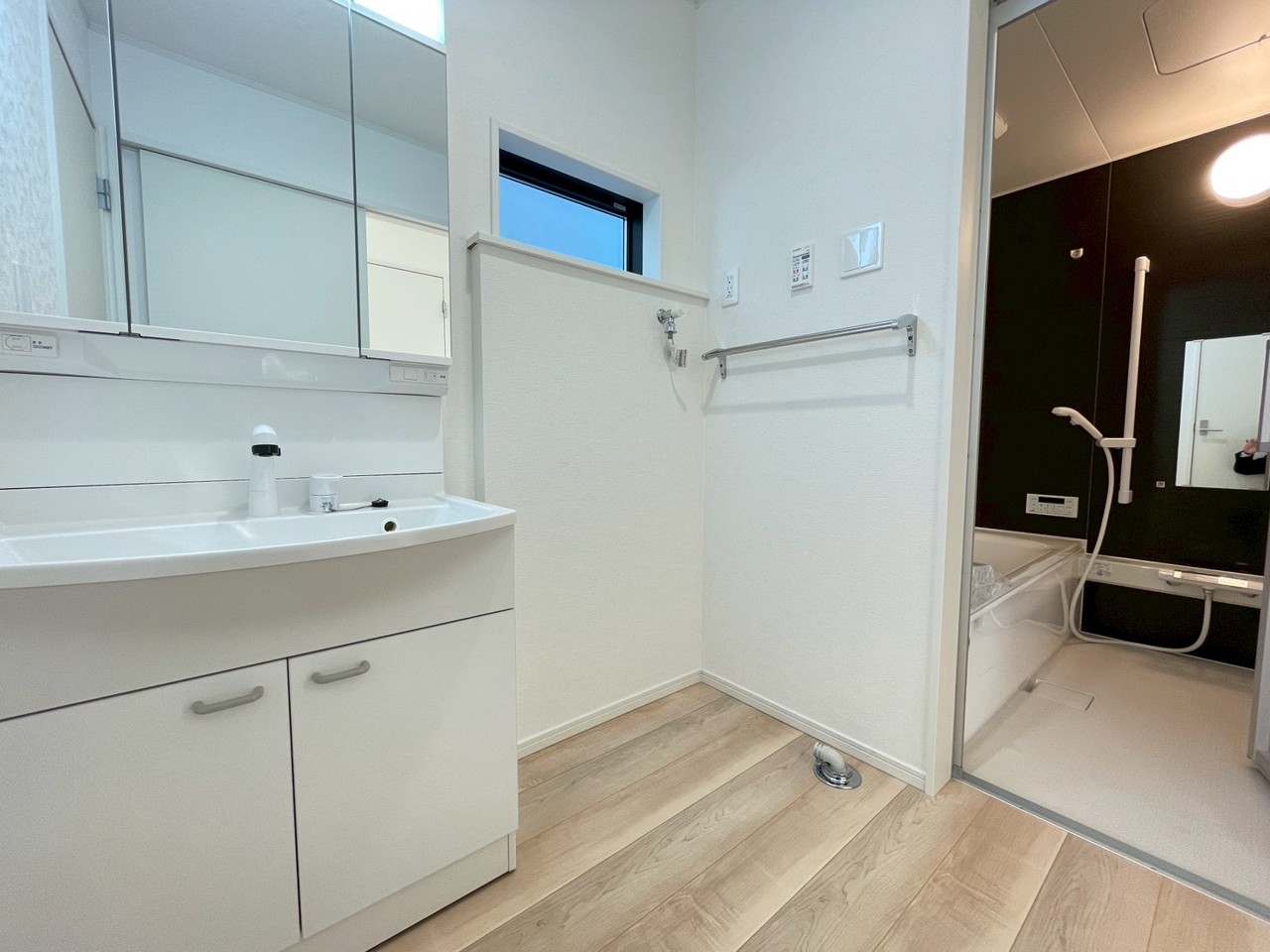 たっぷりの収納を設けたシャワー付洗面台で快適な暮らし。
