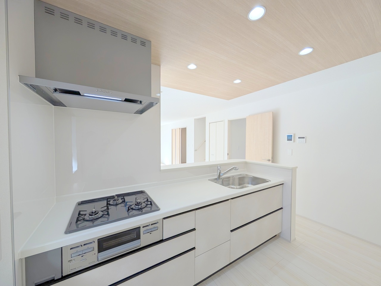 キッチンにも清潔感を追求。白亜の台所でお料理を存分に楽しんでください。