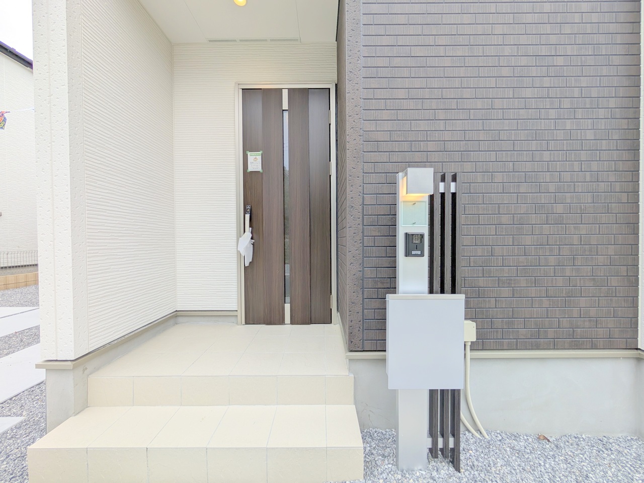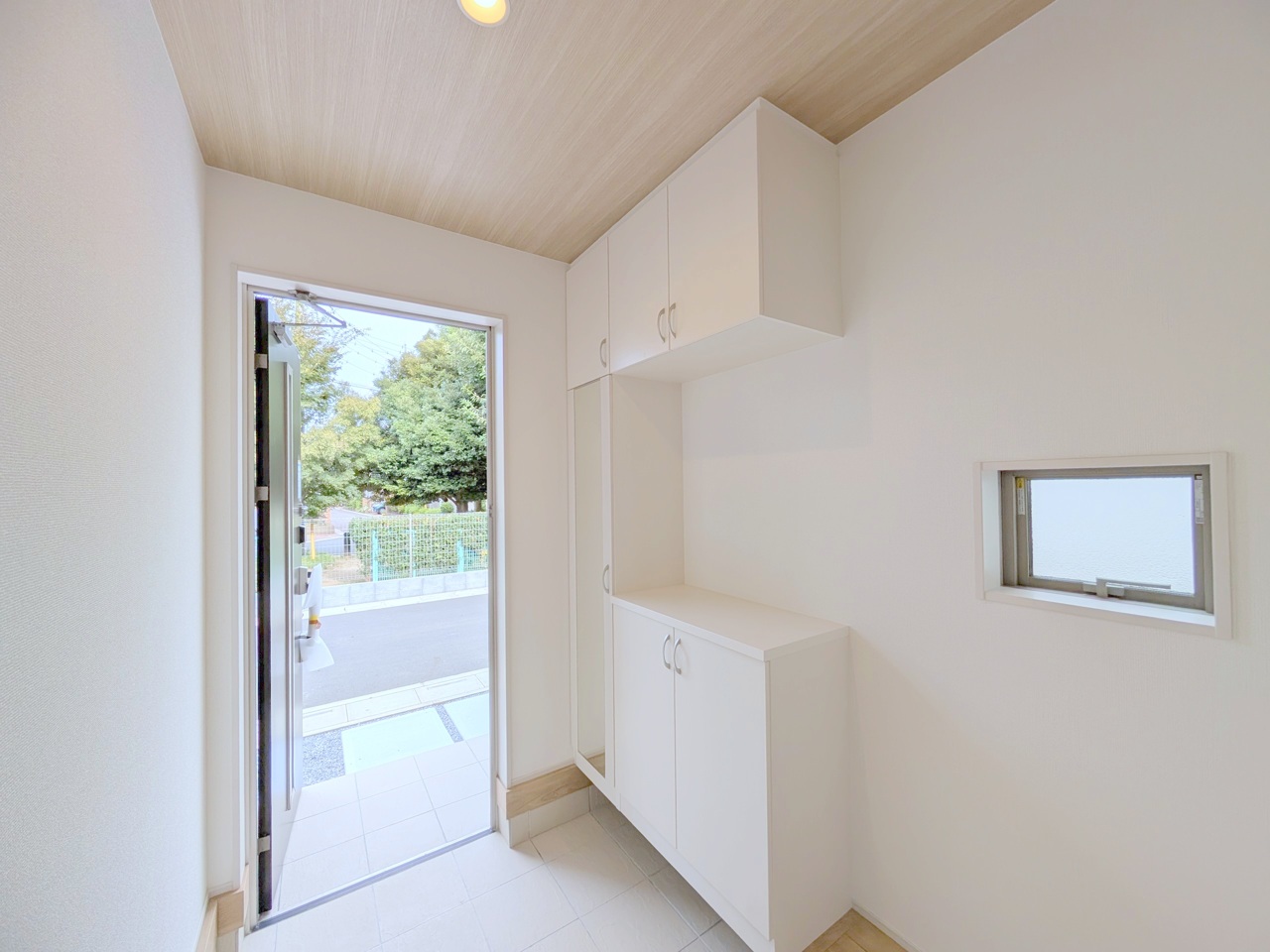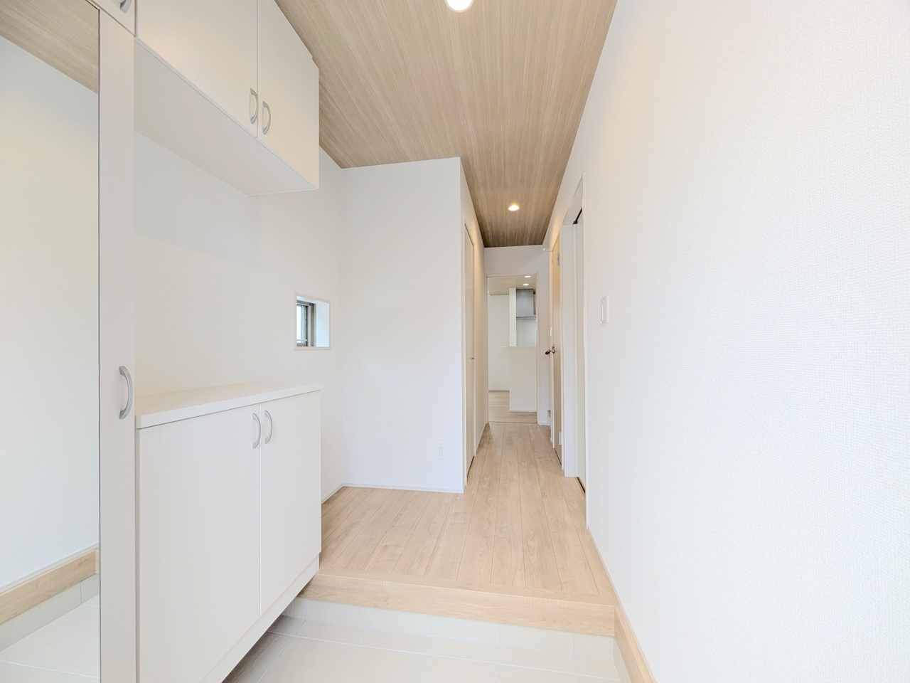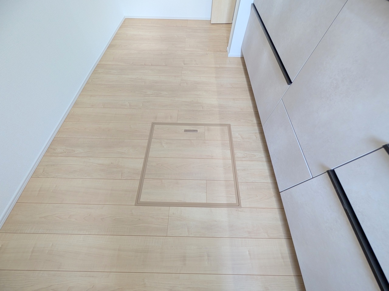 誰も住んだことのない家の玄関スペース。あたらしい木のにおいを感じていただけると思います。