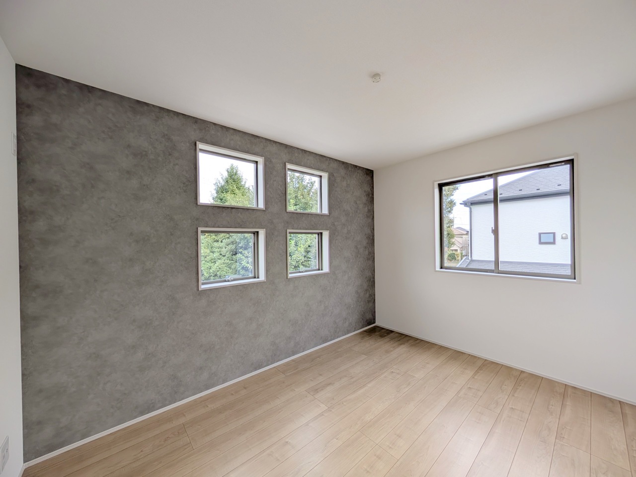 ベースカラーと異なった配色の壁紙を使用。ちょっとお部屋の雰囲気が変わります。
