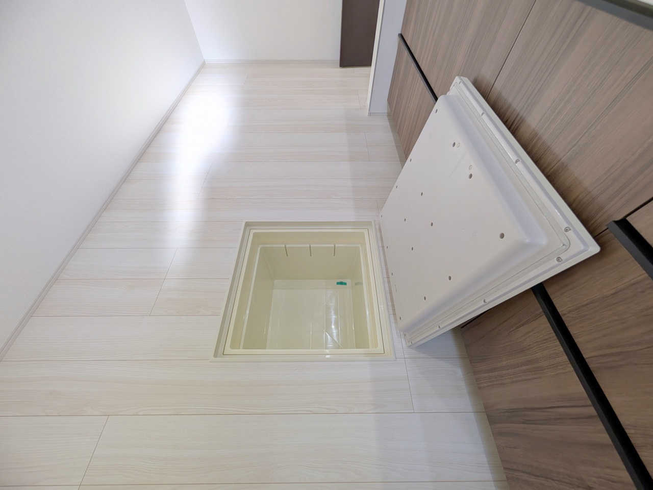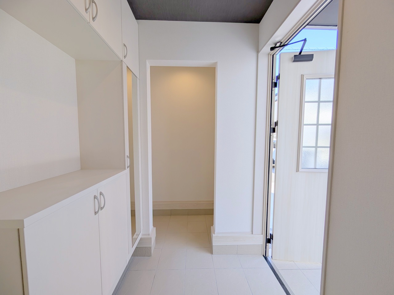 玄関横にシューズインクローク付き、雨具や三輪車を置いても余裕の広さ。