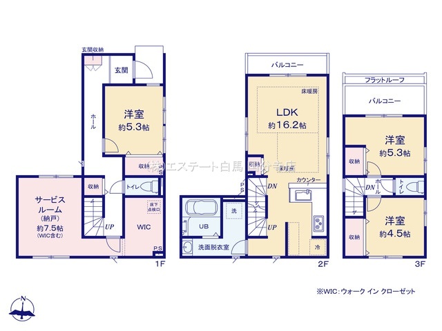 LDK16.2帖、食洗機、床暖房付。納戸、WICあり。全居室収納あり、2面採光。Wバルコニー。TVモニター付インターホン。スーパーまで徒歩2分。