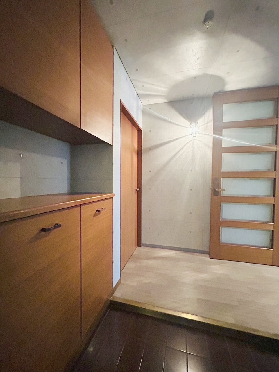 玄関は家の第一印象を左右する重要な場所。ほどよい広さとスタイリッシュな色遣いが印象的です。