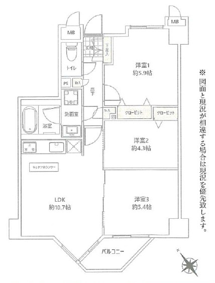 | バルコニー面積 | 3.31m² 南西向き | ||
