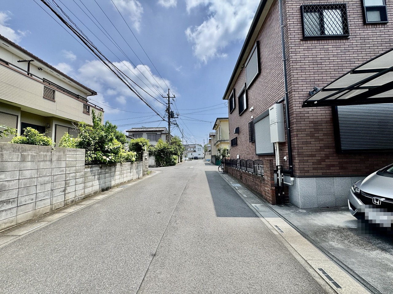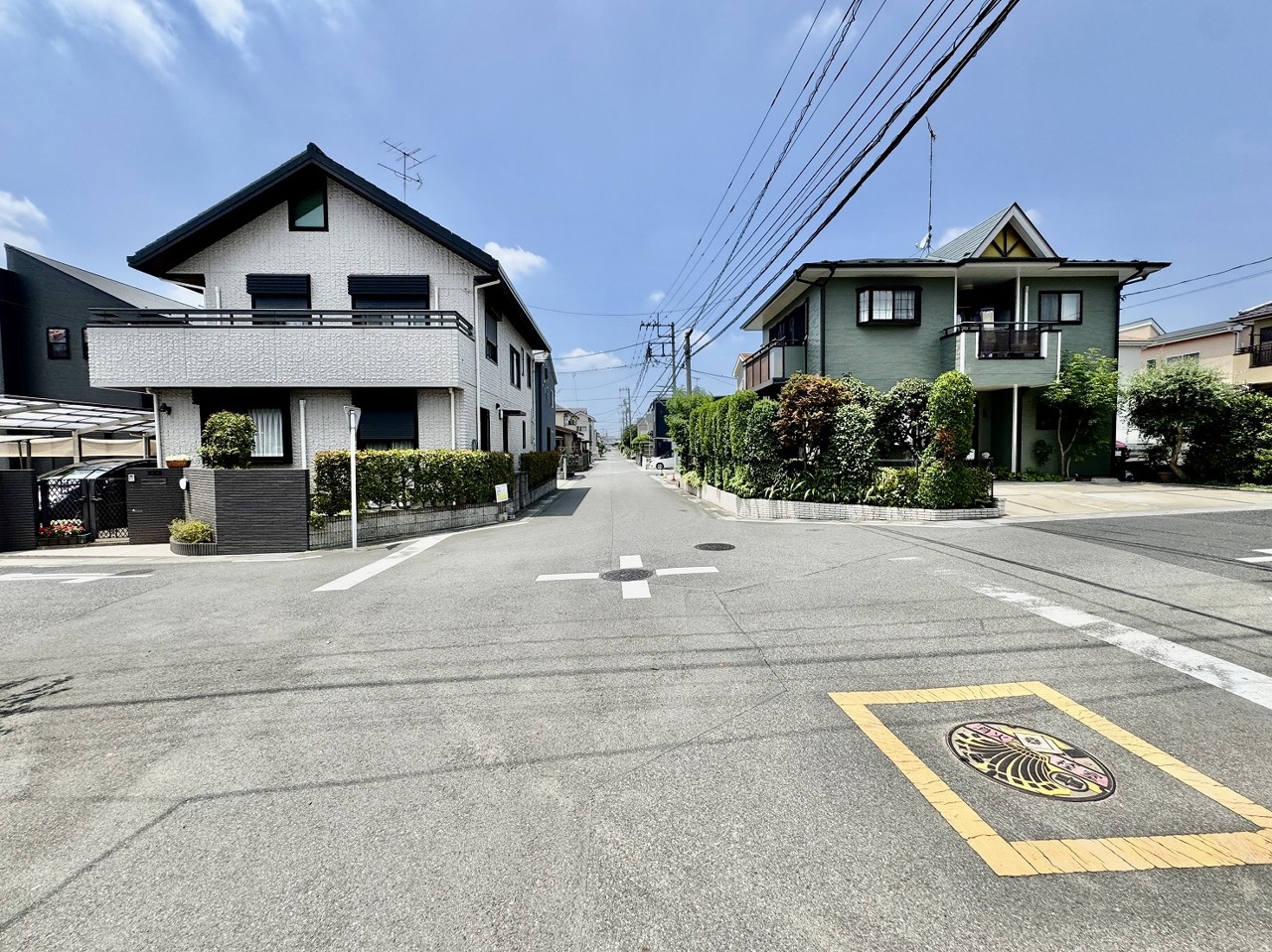 車通りの少ない閑静な住宅地、のびのびした子育てに適します。