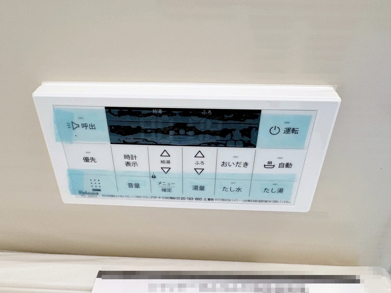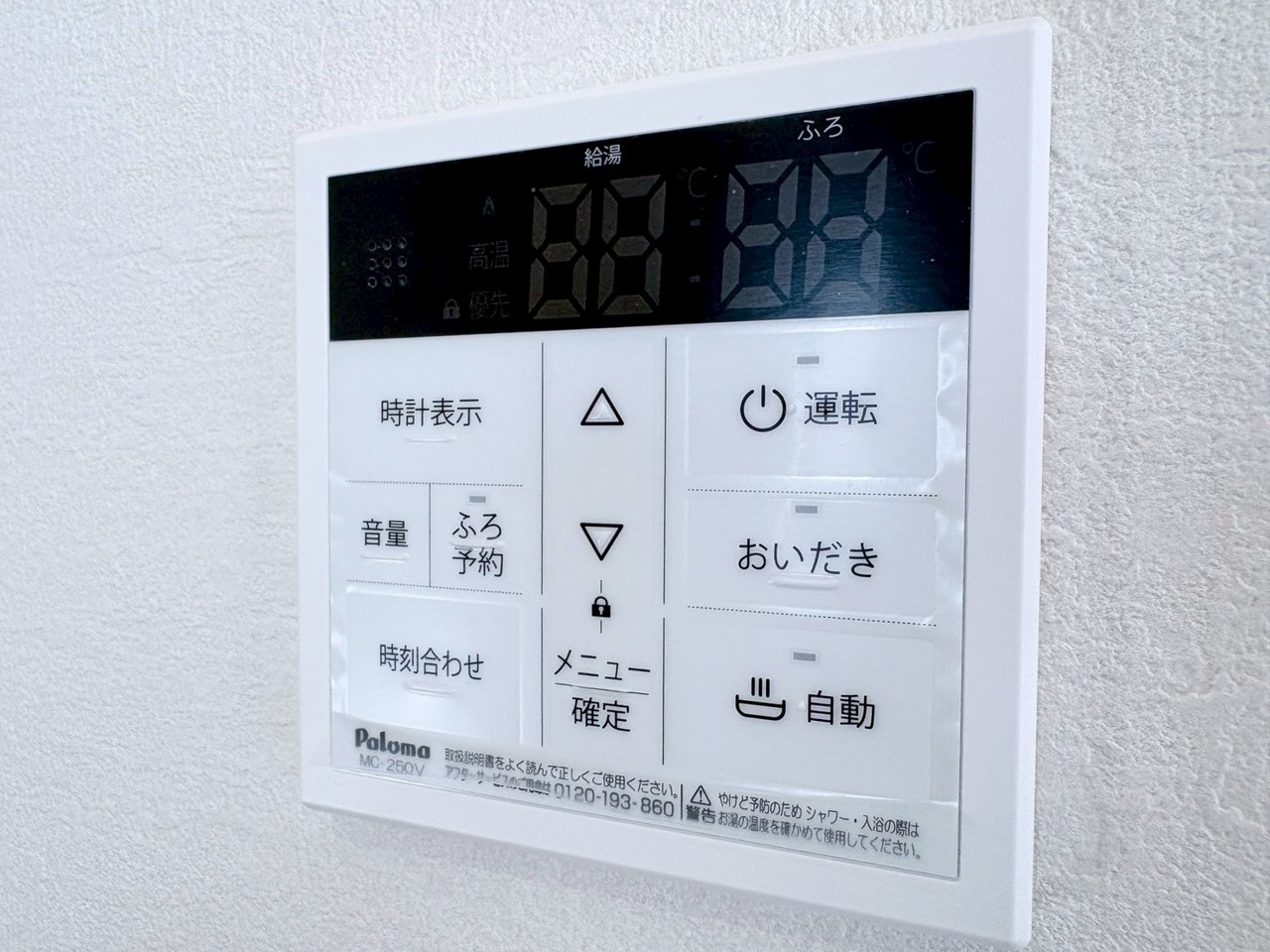 浴室側の給湯リモコン。