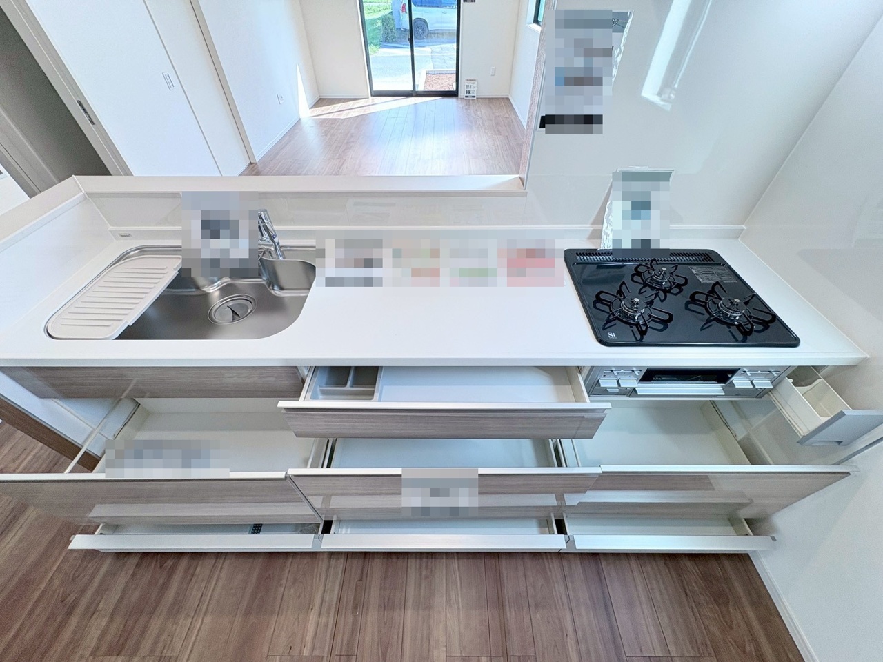 リビングで遊ぶお子様を見守りながらお料理ができる、対面キッチン。