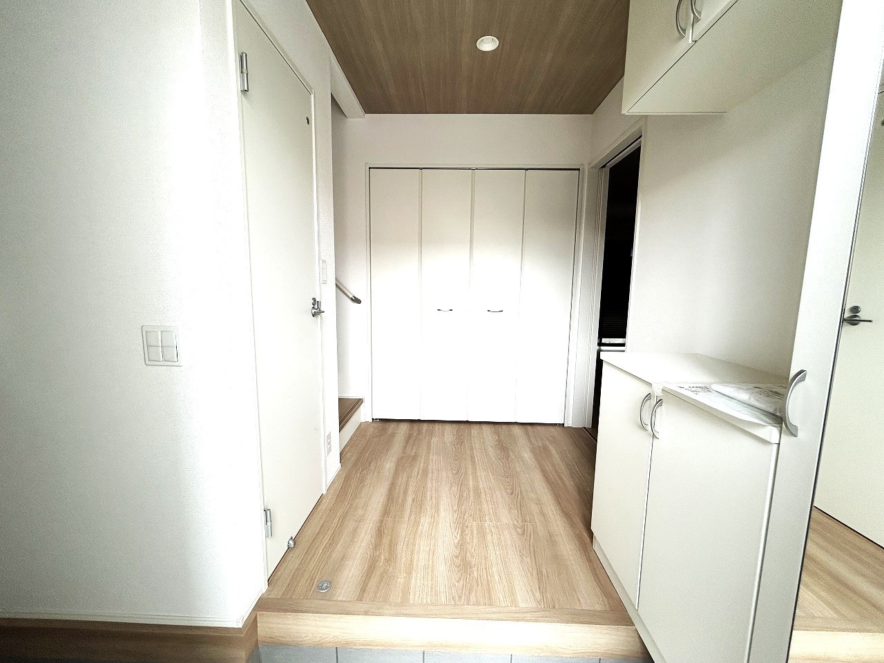 お宅の顔となる明るく開放的な玄関。ご家族皆様様の靴を収納できるスペースと全身鏡があり、お出掛け前に身だしなみチェックもできます。