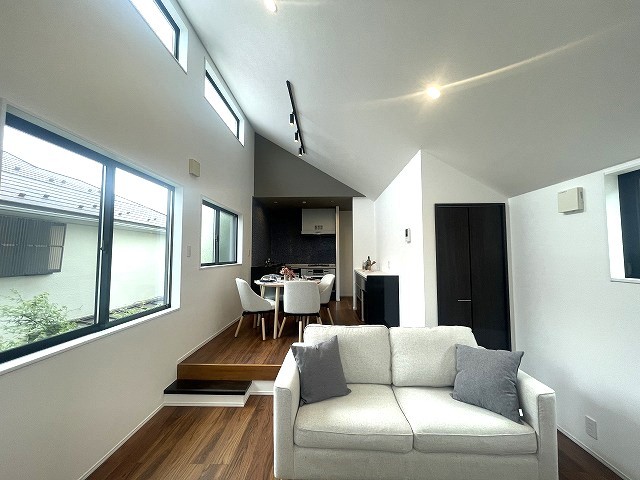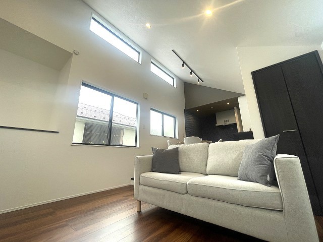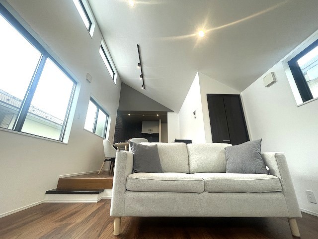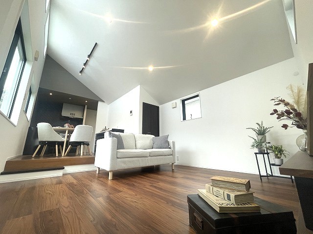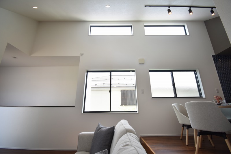 吹抜けを採用した開放的なリビング。窓も多いので陽の光を感じることができます。
