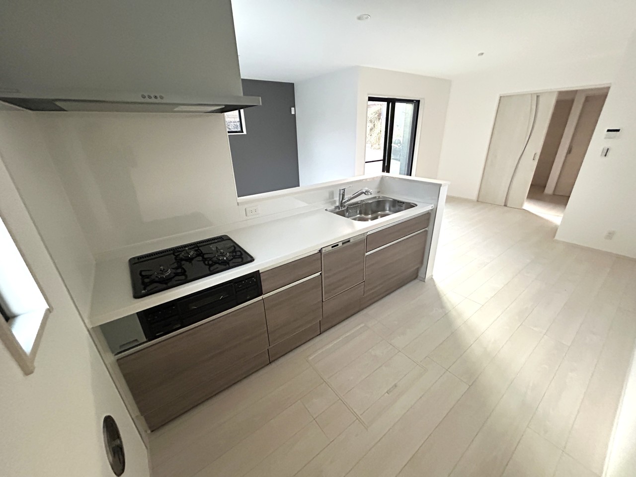 1号棟 リビングで遊ぶお子様を見守りながらお料理ができる、対面キッチン。 2025/11/23m