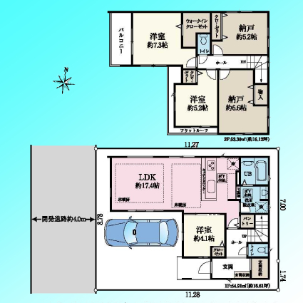 | 間取 | 3SLDK (LDK17.4帖、洋室4.1帖、洋室5.2帖、洋室7.3帖、S5.2帖、S6.6帖) | ||