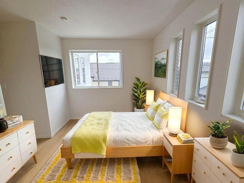 洋室はモダンなデザインと機能性を備え、快適な生活空間に。明るい窓から差し込む自然光が広々とした空間をさらに明るく開放的に感じさせます。