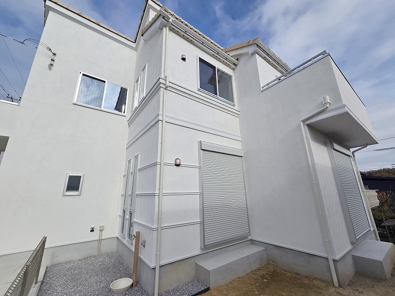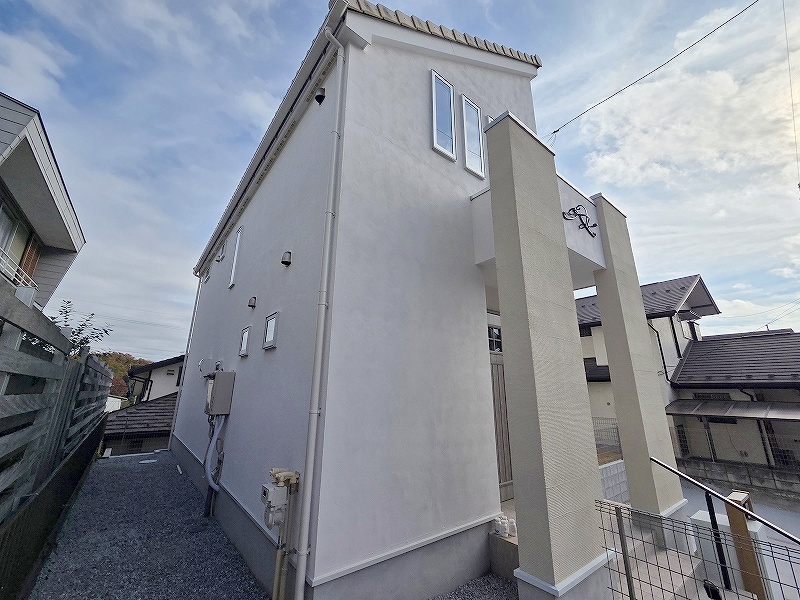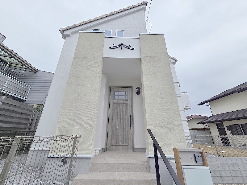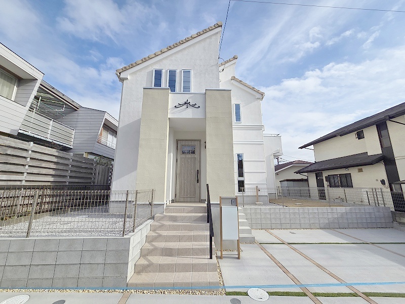 周辺の街並みの中で適度な主張、生活に溶け込むシンプルなデザインの外観が魅力の一戸建です。